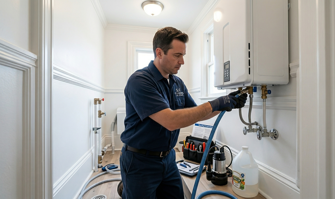 Spring is the right time to run through this checklist. Hot water systems work harder through San Francisco's rainy season. Once warmer months arrive, it's easy to forget the unit sitting quietly on your wall. The problem is that "quiet" doesn't mean "fine." Bay Area municipal water carries enough dissolved minerals to build up scale inside your heat exchanger over a winter's worth of daily use. When that scale gets thick enough, your unit works harder, costs more to run, and wears out faster.